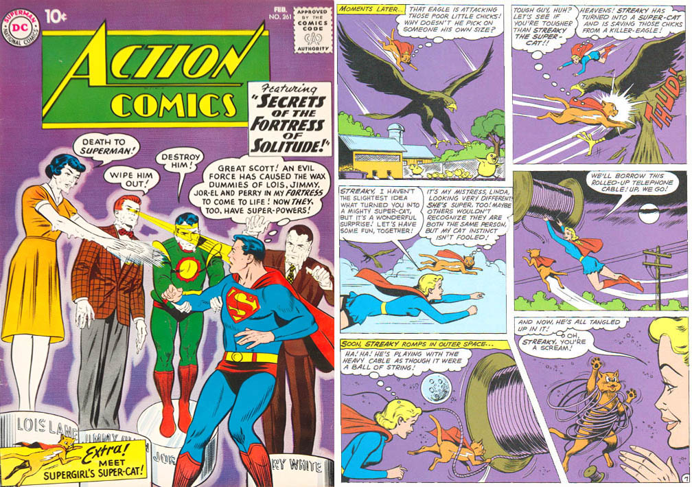 ACTION COMICS 261 (Feb 1960) The first appearance of Streaky the Super-Cat, who will later become a member of the Legion of Super-Pets in ADVENTURE COMICS 293.