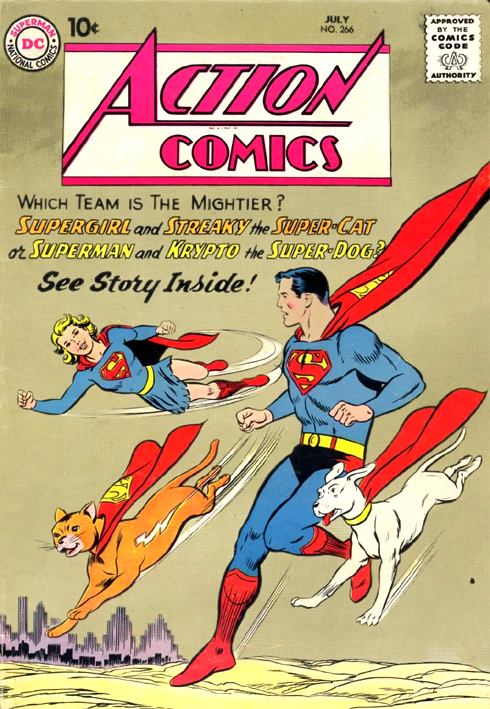ACTION COMICS 266 (July 1960) The issue cover suggests a meeting between Krypto and Streaky, but this does not actually occur in the story. It is likely DC put the pets together to gauge reader response to a possible team-up in a later issue.