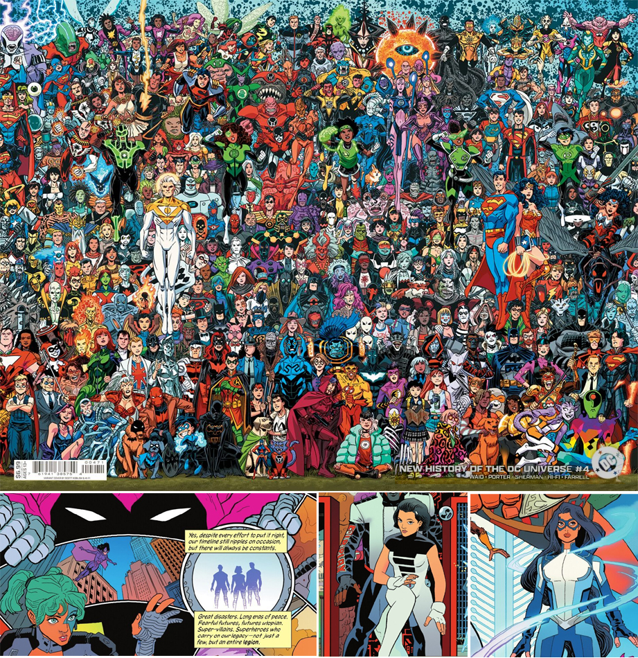 NEW HISTORY OF THE DC UNIVERSE 4 (Nov) There's a reference to an entire Legion of heroes next to what looks like the three Legion founders in a time bubble. Also shown are Dreamer and The Terrifics' Phantom Girl.