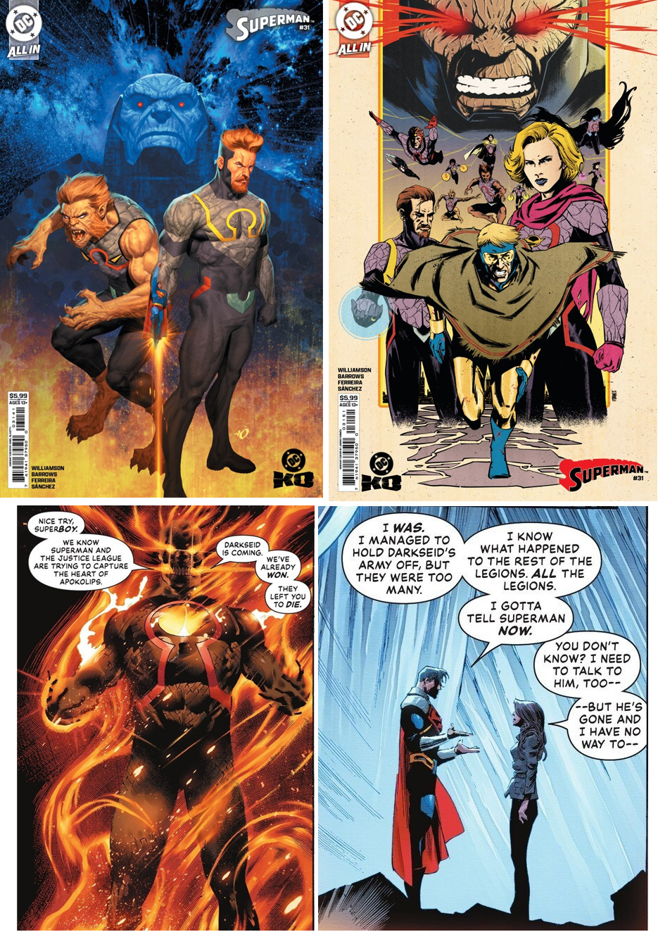 SUPERMAN 31 (Dec) Superboy Prime says he knows what happened to ALL the Legions, before being confronted by Darkseid's Sun Boy.