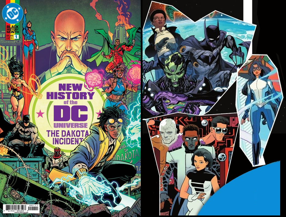 NEW HISTORY OF THE DC UNIVERSE: THE DAKOTA INCIDENT (Apr) A montage of various DC characters includes shots of Dreamer and The Terrifics' Phantom Girl.