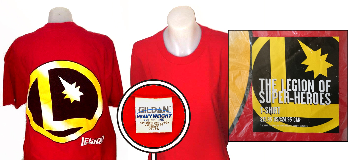 sticker stating simply LEGION OF SUPER-HEROES T-SHIRT,